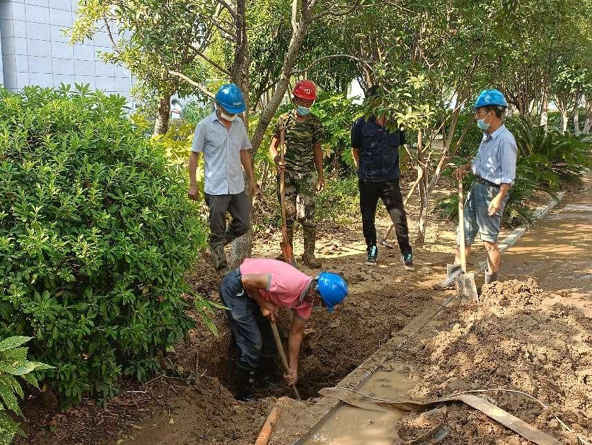 接到通知后,公司運(yùn)維部搶修人員迅速趕往現(xiàn)場(chǎng)進(jìn)行勘察,通過(guò)精準(zhǔn)定位鎖定了漏點(diǎn),并制定了搶修方案??焖偻陂_(kāi)路面,經(jīng)排水、挖掘、清理后,搶修人員對(duì)此處破損的DN300供水管展開(kāi)了搶修。他們采用“哈夫節(jié)”包接方式,將新舊管道接口成功連接。截至當(dāng)天下午3時(shí),經(jīng)過(guò)7個(gè)小時(shí)持續(xù)不間斷奮戰(zhàn),漏水供水管道搶修工作結(jié)束,經(jīng)管壓調(diào)試后恢復(fù)正常供水。