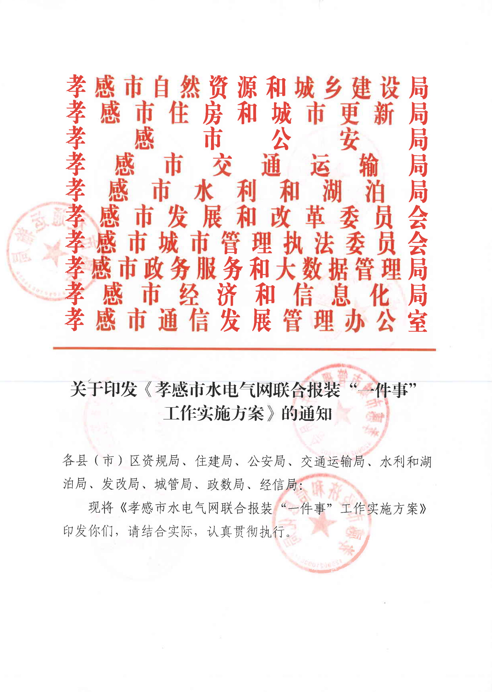 關于印發《孝感市水電氣網聯合報裝“一件事”工作實施方案》的通知