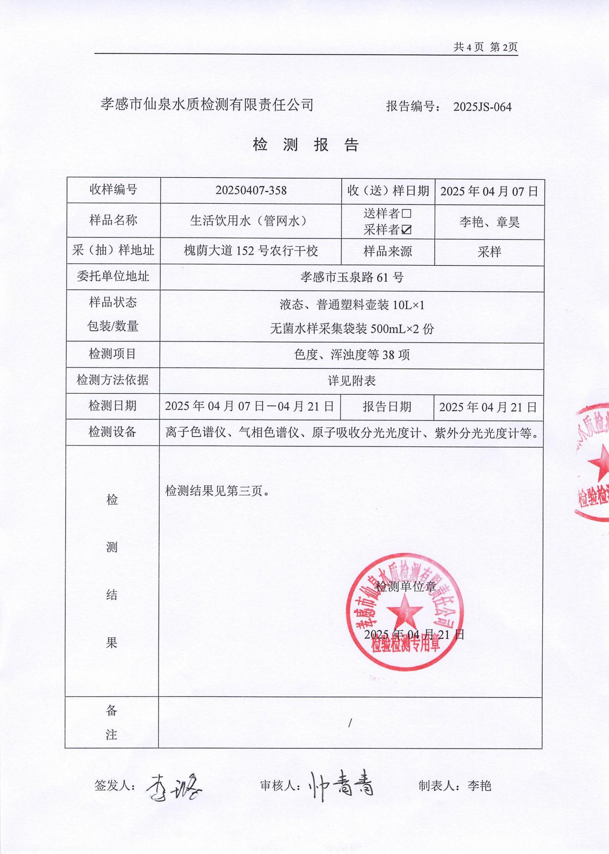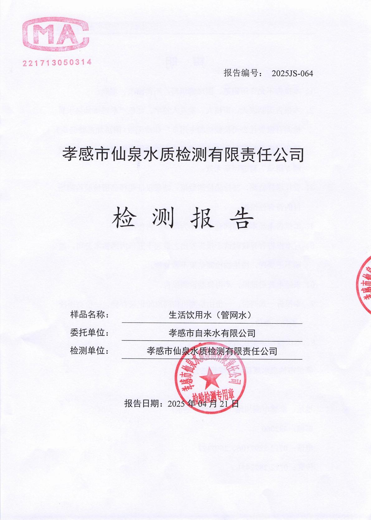 2025年4月檢測(cè)報(bào)告