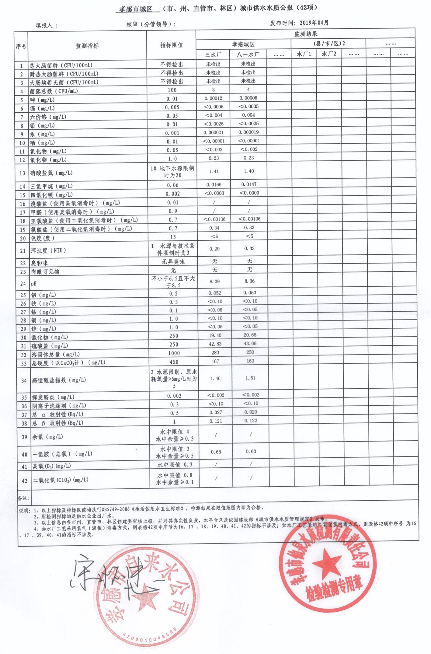 2019年4月水質(zhì)報(bào)告